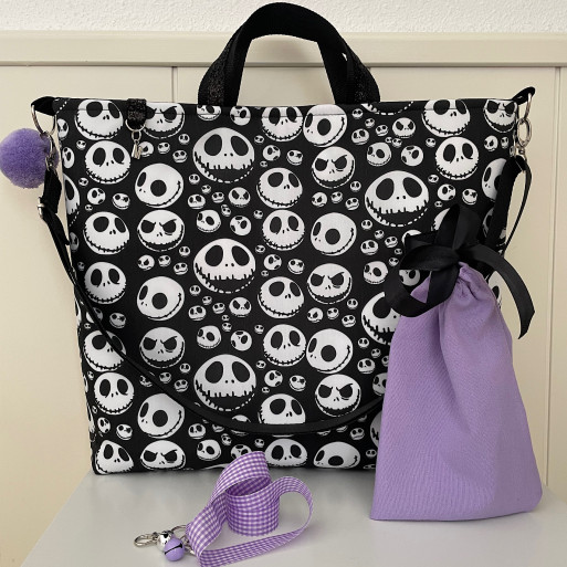 Todos los modelos llevan bolsillo interior, asas dobles (mano y bandolera) cordón de seguridad con mosquetón, bolsita merienda y lanyard con inicial .