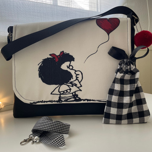 ✅ Confeccionado solapa tejido Canva, cuerpo combinado polipiel vegana y Vichy algodon ecológico, asa corta regulable, cualquier modificación consúltanos.