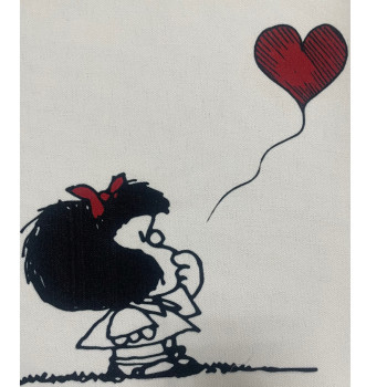 ✅ Solapa imagen Mafalda, exterior combinado en Polipiel y tejido algodón.